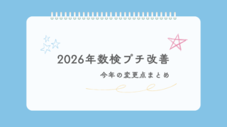 数検て「英検・漢検・数検合わせた三検」の中で一番変更が多い検定だと思います。2020年、2024年、2025年と変わってきていて、2026年にも変わるそうです。今回は2026年4月から変わる内容についてまとめておきます。2026年改定内容個...