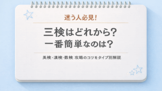 三検(英検・漢検・数検)で一番簡単なのはどれ?合格率データや得意分野別の難易度を徹底比較。塾なし・部活優先の中学生におすすめな受検順や、高校受験の加点対象となる級の目安を解説します。わが家が数検から始めた理由と、成功体験を作るコツを公開中。